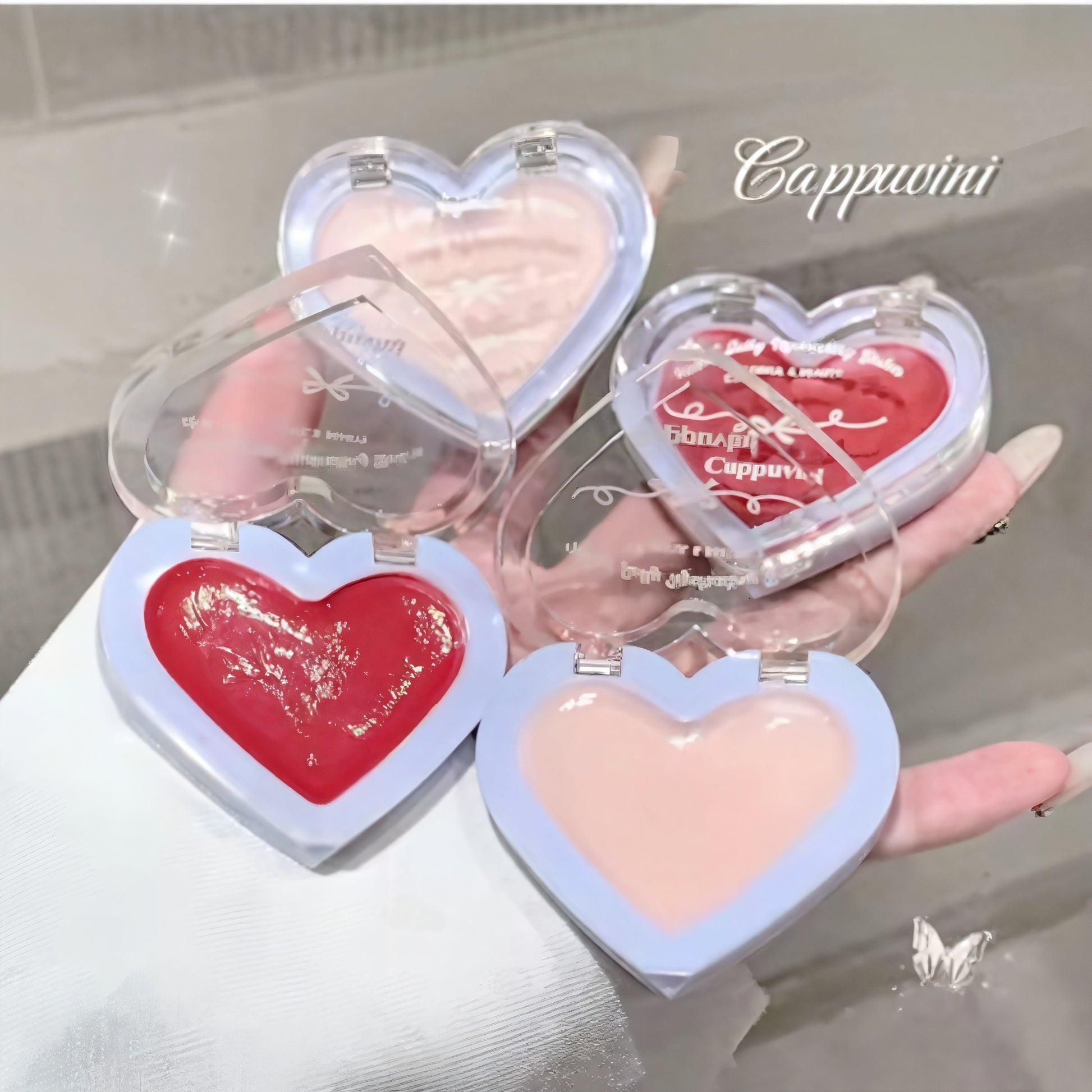 Heart Jelly Hydrating Balm — Plush Tint & Dewy Shield. A cushiony, jelly‑texture balm that melts on contact to deliver instant, glassy hydration and a sheer wash of color; enriched with humectant‑rich glycerin and nourishing botanical oils, it smooths and softens while forming a lightweight, non‑sticky veil that catches light and resists feathering—dab a fingertip for a natural, kissable sheen or layer for a more saturated, glossy finish that stays comfortable all day.