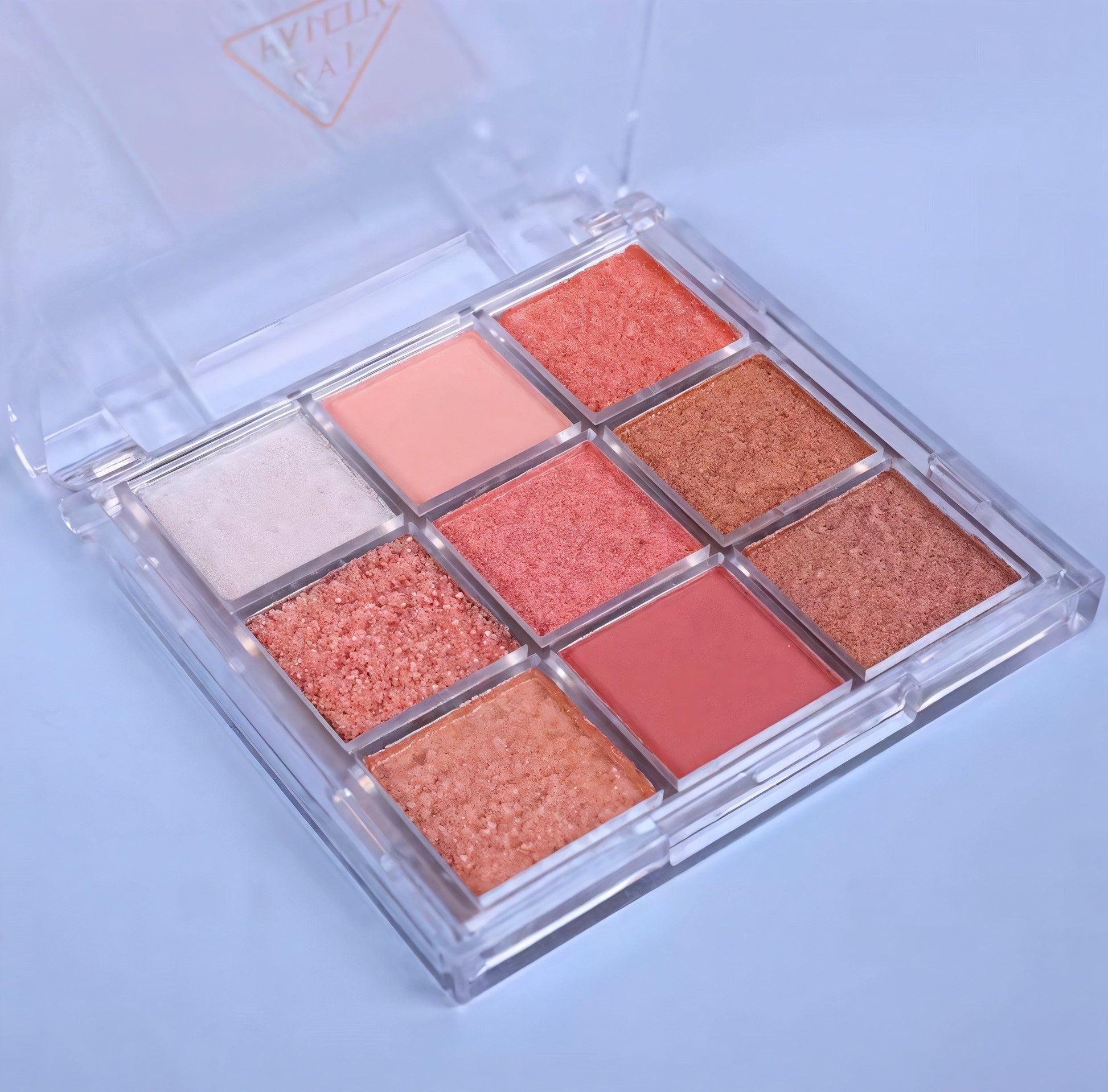 A compact nine‑pan eyeshadow palette featuring warm peaches, corals, bronzes, and golds in a balanced mix of matte and shimmer finishes. Pigments are blendable and buildable for soft daytime washes or layered intensity for evening looks, while the clear case keeps shades visible for quick selection. Travel‑ready and easy to use, this palette creates cohesive, luminous eye looks with minimal effort.