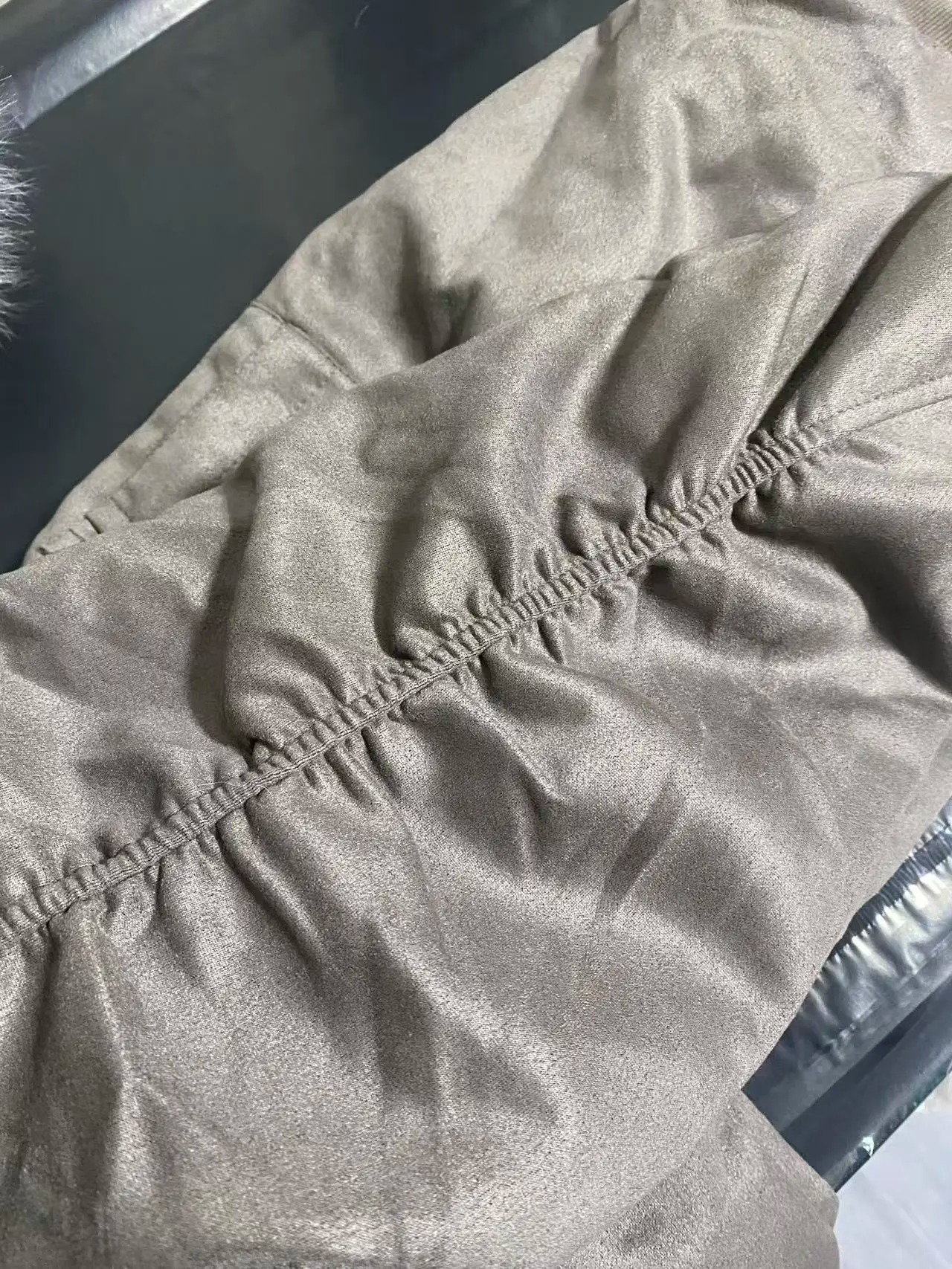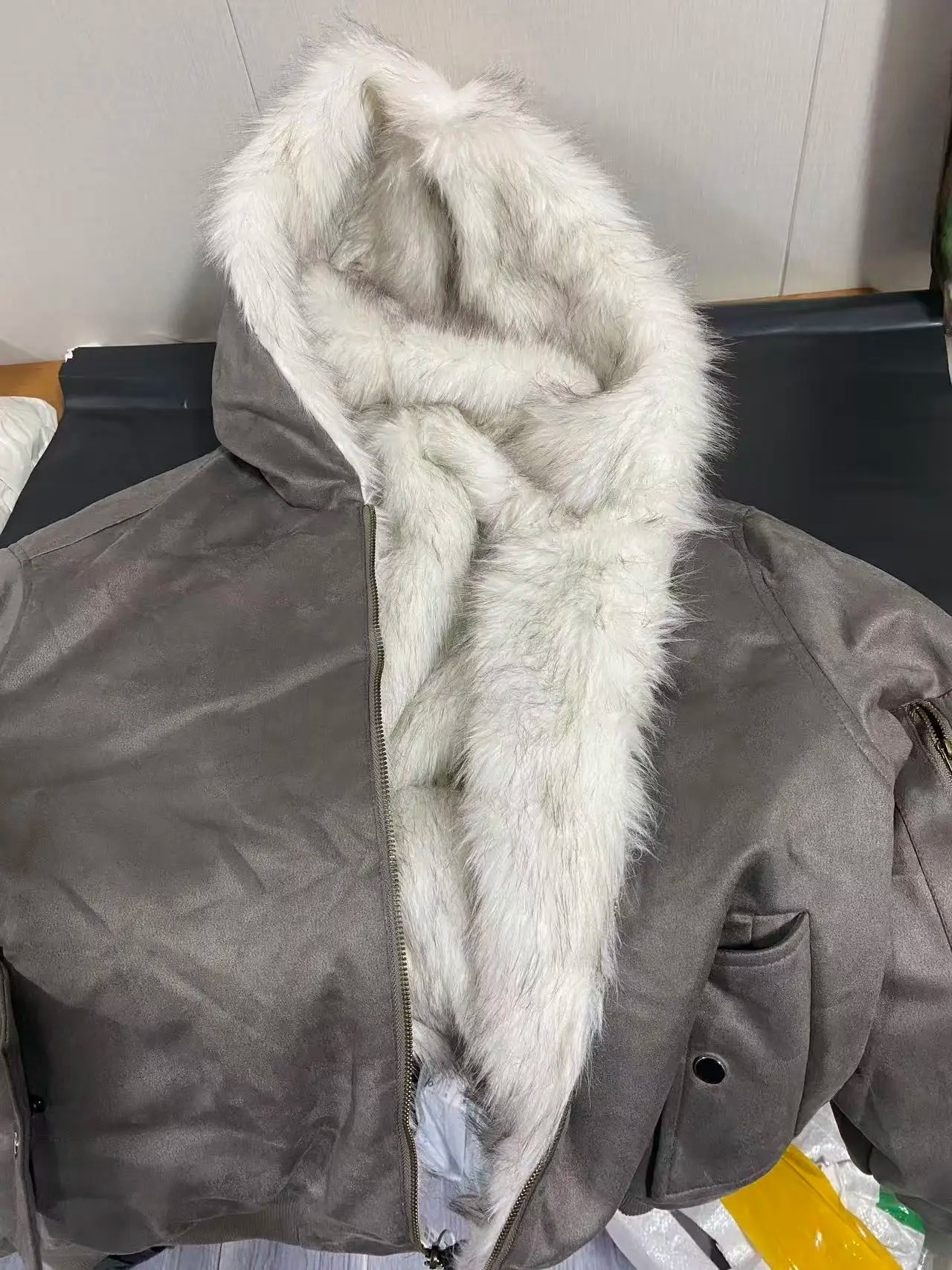 Oversized Gray Faux Fur-Lined Hooded Jacket